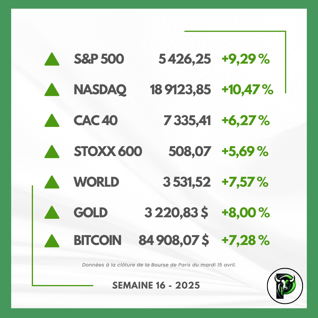 ➡️ Résultat immédiat : les marchés US ont signé une des plus fortes hausses journalières depuis la Seconde Guerre mondiale. 🤯