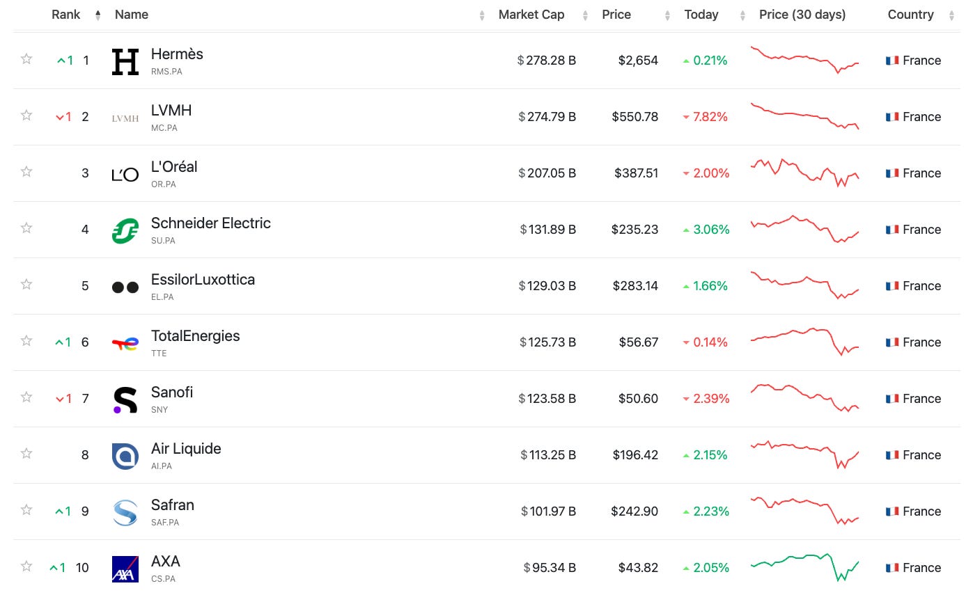 🔍 La valeur à suivre : LVMH chute. Hermès en profite et devient la première capitalisation boursière française.